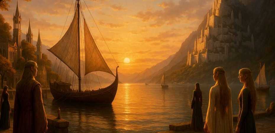 So wie das Böse einst bei der Erschaffung der Welt geboren wurde, kam auch das Gute zu Tage. Mit den „Elben“ hat Tolkien ein Volk geschaffen, das an Engel erinnert. Engel, die einen Ausweg kennen: Es gibt einen Hafen, die Grauen Anfurten. Von hier ist es möglich, nach Valinor zu segeln, in die Unsterblichen Lande.